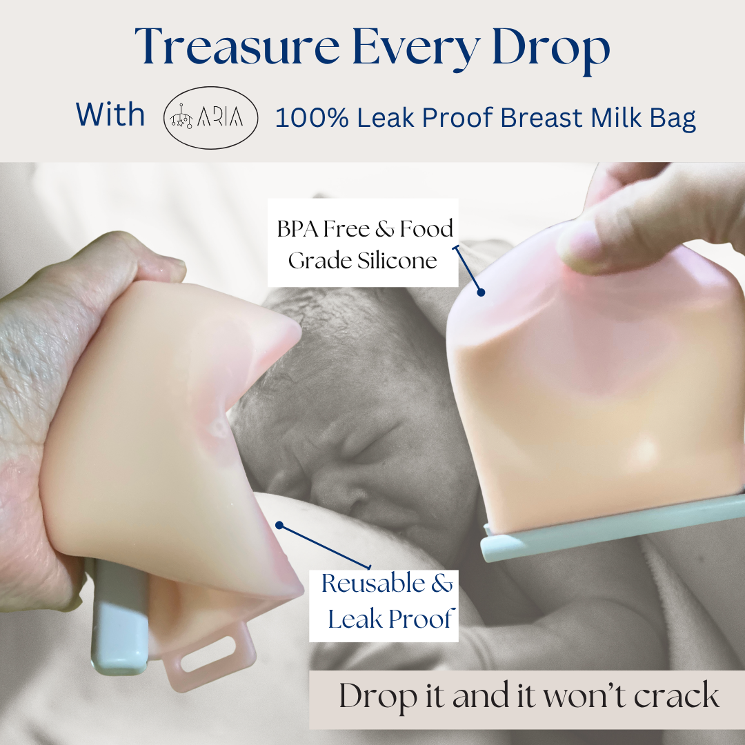 3) Materials - The whole silicone breastmilk storage bags are made of food grade silicone, FDA, and BPA free. The seal is made in ABS, which prevents leakage.